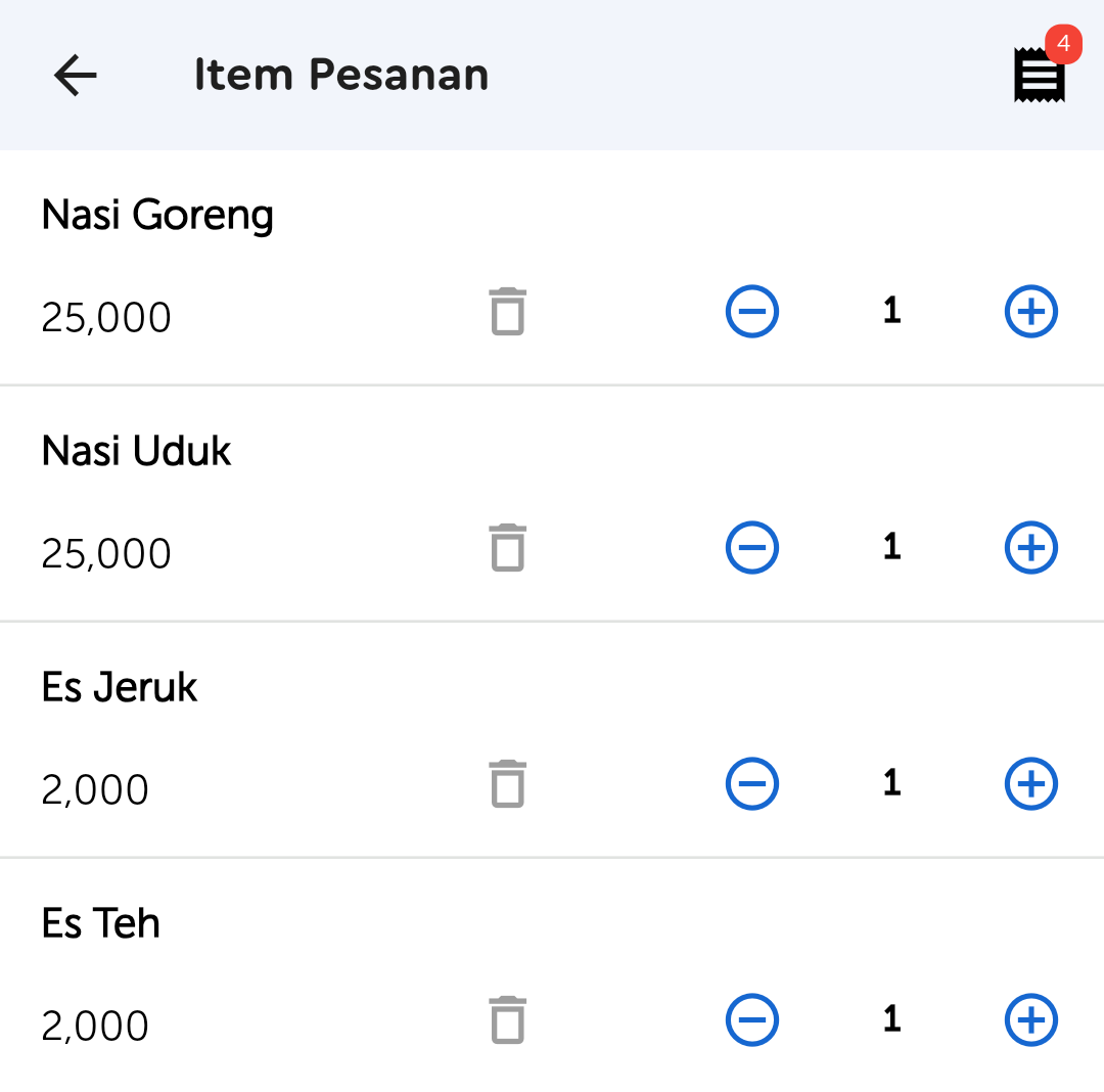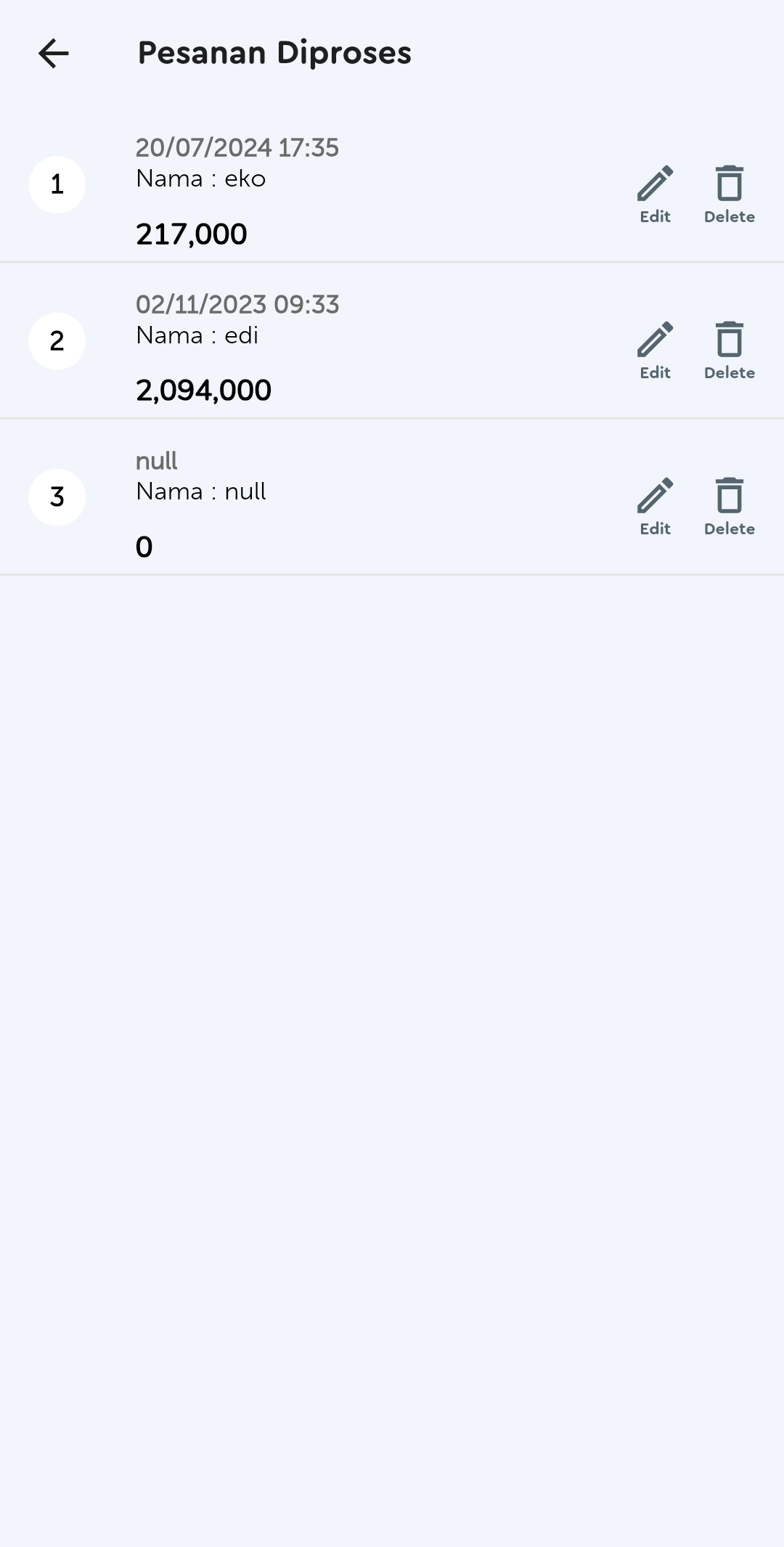 - Klik tombol action di kanan atas untuk melihat pesanan disimpan yang belum selesai dan masih diproses.