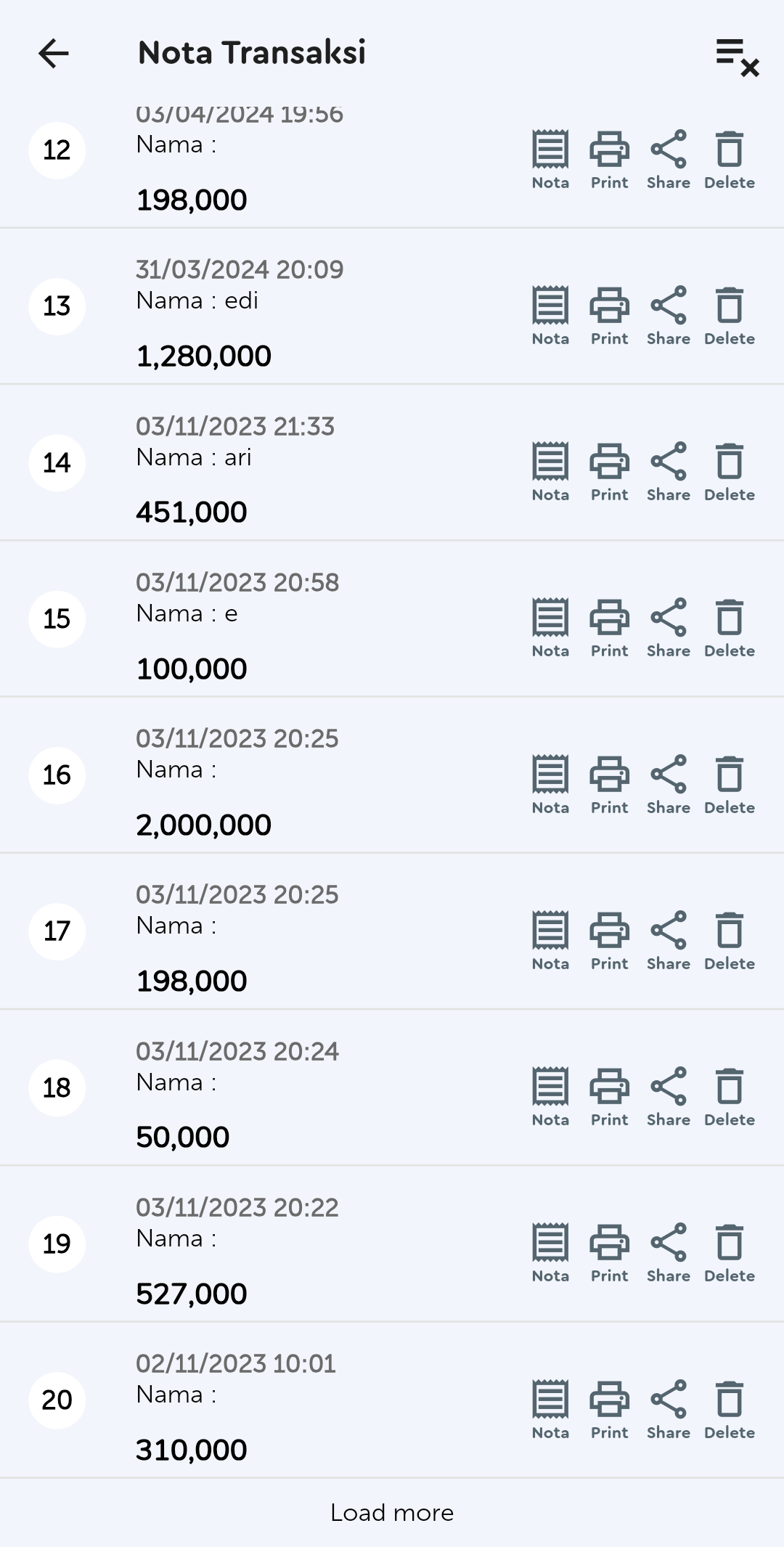 - Klik tombol kanan atas untuk melihat transaksi yang dihapus